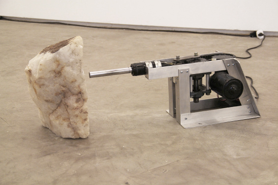Gabriela Mureb, Machine #4: stone, 2014–17. Stone, electric motor, and aluminum, 13 ¾ x 29½ x 9 7/8 in (35 ×75 × 25 cm). Courtesy the artist and Central Galeria, São Paulo