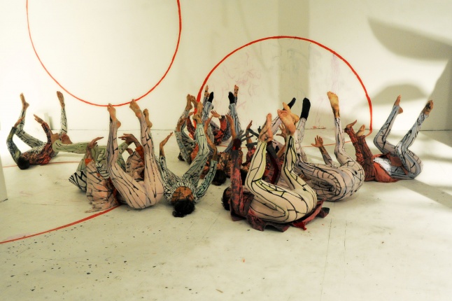 Chetwynd uses a variety of historical theatrical forms, from Brechtian drama to puppet shows, often within the same performance. The result is an experience that is accessible, humorous, and disorienting. Chetwynd initially studied anthropology and uses the idea of bricolage as both a physical practice and the organizing principle to bring together the disparate images and characters within her work. The carnivalesque world she creates is one in which figures like Emperor Nero, Mae West, Karl Marx, and Jabba the Hutt can comfortably—if not peacefully—coexist. The informality of Chetwynd’s performances and the effortless mix of high and low sources make them remarkably democratic spaces for exploring ideas about history, class, and contemporary culture. For instance, her recent exhibition at Sadie Coles HQ, London, titled “Odd Man Out,” invited viewers to enter a carefully choreographed world in which every decision they made had a range of political consequences.
