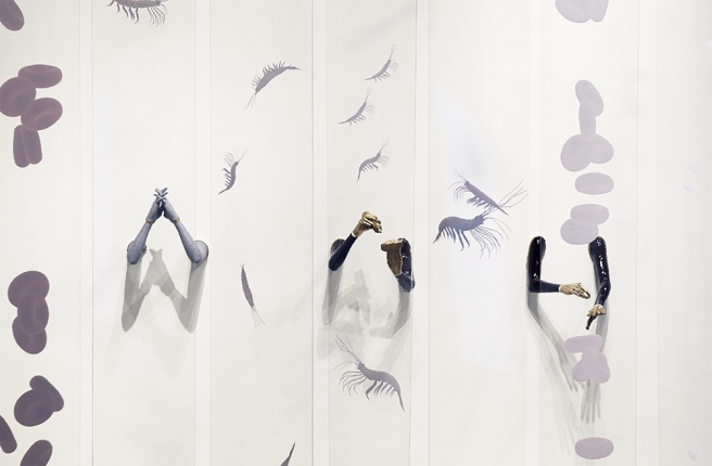 Featuring fifty-one artists from over twenty-five countries, “Surround Audience” pursues numerous lines of inquiry, including: What are the new visual metaphors for the self and subjecthood when our ability to see and be seen is expanding, as is our desire to manage our self-image and privacy? Is it possible to opt out of, bypass, or retool commercial interests that potentially collude with national and international policy? How are artists striving to embed their works in the world around them through incursions into media and activism? A number of artists in the exhibition are poets, and many more use words in ways that connect the current mobility in language with a mutability in form. The exhibition also gives weight to artists whose practices operate outside of the gallery—such as performance and dance—and to those who test the forums of marketing, comedy, and social media as platforms for art. The building-wide exhibition encompasses a variety of artistic practices, including sound, dance, comedy, poetry, installation, sculpture, painting, video, one online talk show, and an ad campaign.