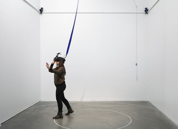 In addition to works featured in the galleries, the curators selected artists to mobilize sites outside of the Museum, including the means of dispersing information about the exhibition itself. Such projects include the Triennial ad campaign Extended Release (2015), which was conceived and designed by New York artist collective K-HOLE and serves as the group’s contribution to the exhibition. Filmed at the Museum, episodes of Ovation’s “Touching the Art” (2014–15)—a web series by Casey Jane Ellison—focus on themes broached by “Surround Audience” and will temporarily become an artwork in the exhibition.