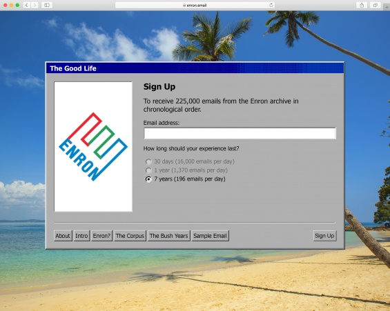Building on recent New Museum events that delved into the implications of machine learning for issues of subjectivity and bias, this panel discussion convenes artists and researchers who will consider the historical and human context of the Enron email archive and its ongoing use in machine learning. This event is organized by New Museum affiliate Rhizome with Sam Lavigne and Tega Brain, in conjunction with their online exhibition “First Look: The Good Life,” which invites users to subscribe to receive hundreds of thousands of emails from the Enron archive over the course of seven years.