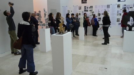 Guided tour by members of Prelom of “Political Practices of (Post-) Yugoslav Art,” 2009. Exhibition view: Museum of Yugoslav History, Belgrade. Produced by Prelom in conjunction with kuda.org, Sarajevo Center for Contemporary Art (SCCA/pro.ba.), and What, How & for Whom (WHW). Photo: Vladimir Jerić Vlidi