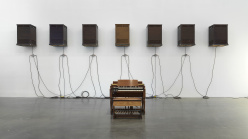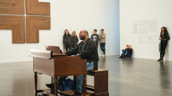 Theaster Gates’s work in the areas of sculpture, social practice, collaborative performance, and archiving has made him one of the most compelling artists active today. Gates emerged in the early 2000s with a sculptural practice characterized by the use of salvaged materials and deeply researched interdisciplinary histories. The elegiac formalism of Gates’s large-scale tar paintings, experimental clay vessels, and immersive architectural installations can be linked to both personal and collective narratives of labor and spirituality. In recent years, Gates has rescued a variety of historical collections of images and objects in Chicago, creating both architectural spaces and sculptural structures for their preservation and dissemination to wider audiences. For Gates, collective forms of knowledge are built across objects, images, sounds, movements, and relationships between people.