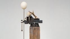 The exhibition includes a number of commissioned works, including a major new braided sculpture by Diamond Stingily that snakes through gallery floors, trailing from the Fourth Floor all the way down to the Museum’s Lobby, and alludes to the racial dimensions of beauty conventions as well as to Medusa, the mythological snake-haired woman whose gaze could turn men into stone. Nayland Blake has produced a life-size suit of their “fursona” named Gnomen, which the artist periodically inhabits and activates throughout the course of the exhibition. Tuesday Smillie continues a recent series of textile works that both refer to significant historical protest signs—such as those associated with Sylvia Rivera, Marsha P. Johnson, and other members of Street Transvestite Action Revolutionaries—and present new slogans. ektor garcia presents a series of site-specific, readymade sculptures that evoke S&M fetish gear and Mexican housewares while suggesting movement away from definitive gender and sexual roles.
