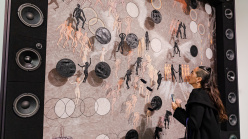 “The Shadow of Spring” investigates the phenomenon of vibration and how it is capable of generating collective transformative experiences. Featuring newly commissioned sculptures, installations, embroidery pieces, and sound works developed separately and in collaboration, this installation will form an encompassing environment created to provoke alternative ways to experience the sonic dimension. Inspired by how different rhythms and frequencies can affect group dynamics (as in temples, dancefloors, and urban spaces), Caccuri and Greenberg look into the multifaceted relationships between bodies and soundwaves. With works that point to the unseen dimensions of life and subjectivity, this presentation will highlight the invisible bonds that connect us to one another, reflecting on how sound can integrate communities and dismantle preconceived ideas of what bodies are, can do, and can become.